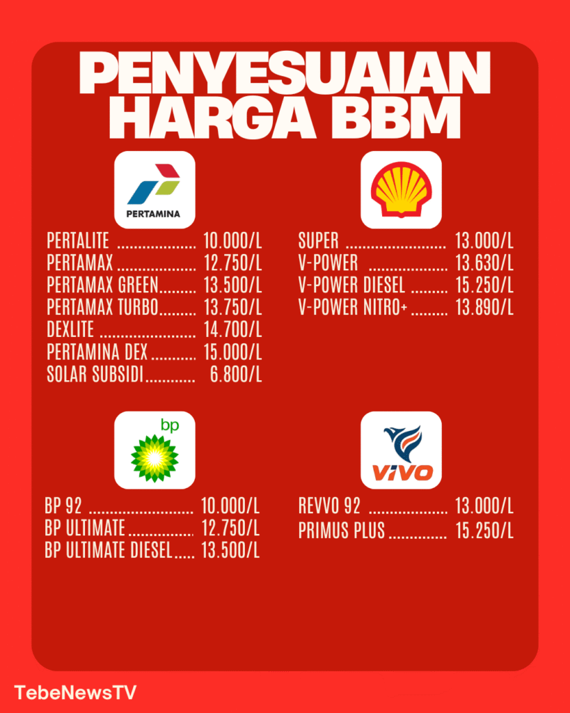 Kenaikan ini diumumkan bersamaan dengan penyesuaian harga oleh empat SPBU besar, yaitu Pertamina, Shell, BP-AKR, dan Vivo. Setiap brand merilis harga terbaru berdasarkan kategori bensin berstandar Research Octane Number (RON) untuk BBM bensin dan Cetane Number (CN) untuk BBM diesel.